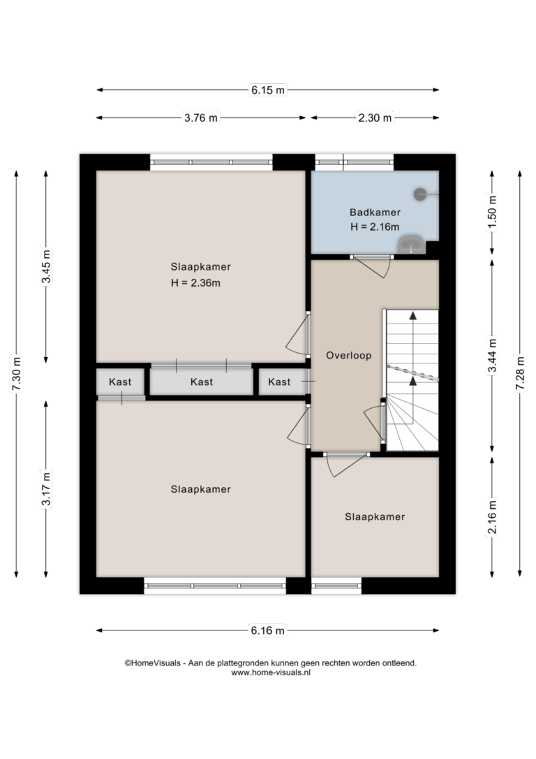 Eerste verdieping: overloop met vaste kast - badkamer voorzien van douche, wastafel en witgoedaansluiting - slaapkamer 1 met vaste kast - slaapkamer 2 met vaste kast - slaapkamer 3.