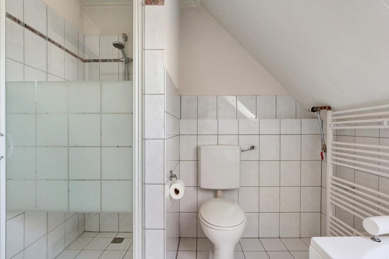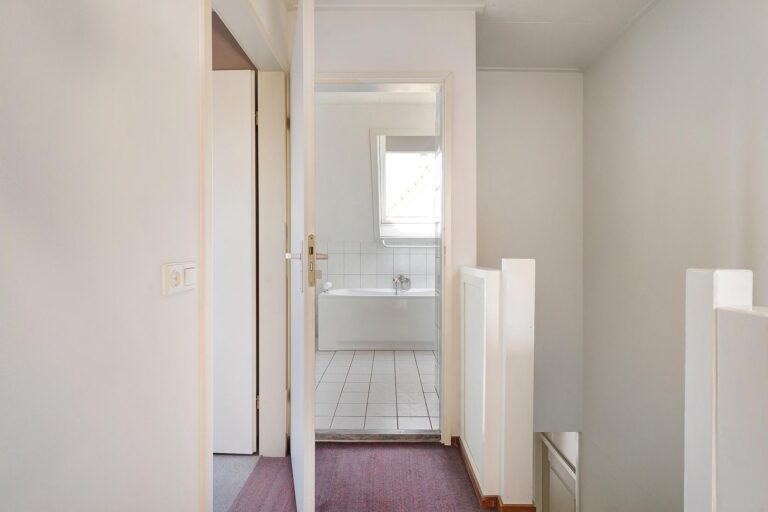 Eerste verdieping: overloop - 3 slaapkamers - badkamer voorzien van ligbad, toilet, inloopdouche en wastafel.