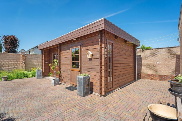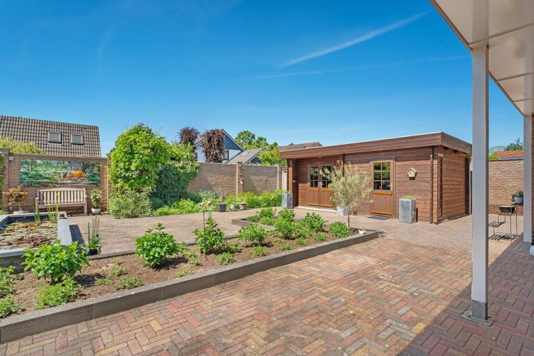 Tuin: de tuin is gelegen op zonnige westen en voorzien van tuinhuis en heerlijke ruime overkapping