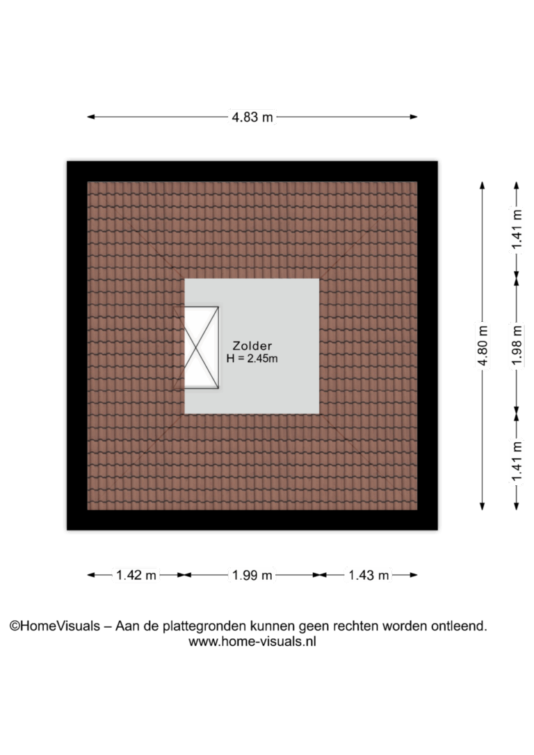 Tweede verdieping: middels vlizotrap bereikbare bergzolder.