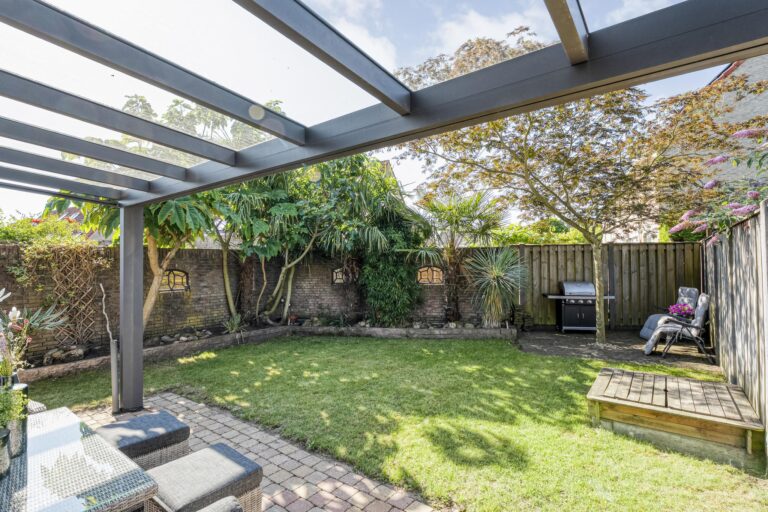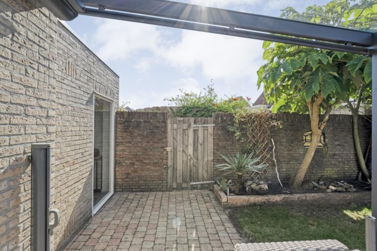 - Voorzien van een aangebouwde overkapping met zonnescherm.